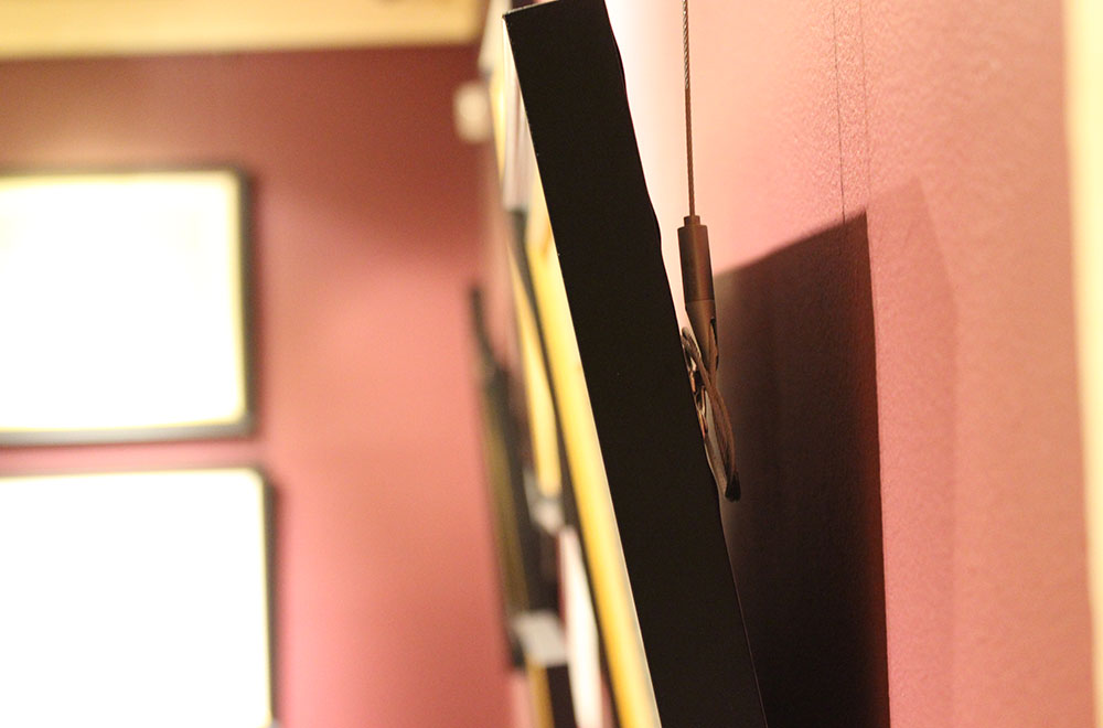 壁がレンガでできており、フック付きのピクチャーレールを納入。