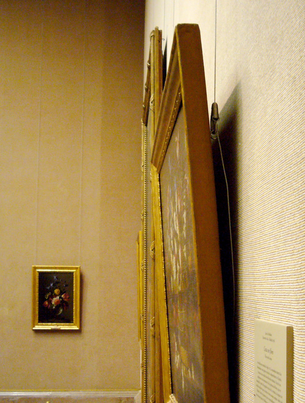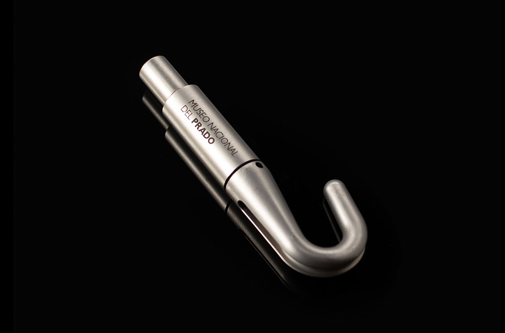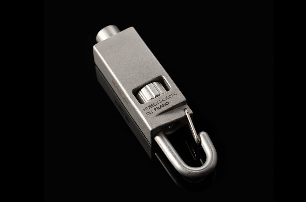 プラド美術館のオーダーで製作したハンガー。吊ったあとで額の歪みを微調整するために、ダイヤルが付いている。