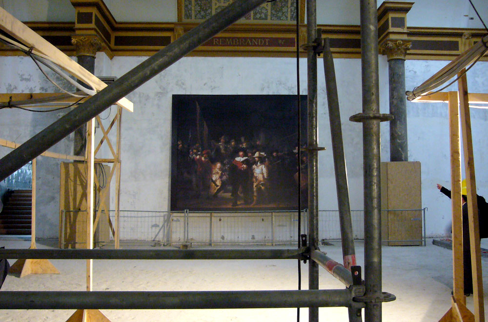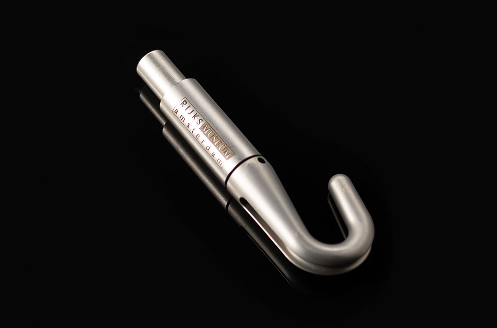 新たに設置したピクチャーレール。ハンガーにアムステルダム国立美術館の名前を入れて納品。